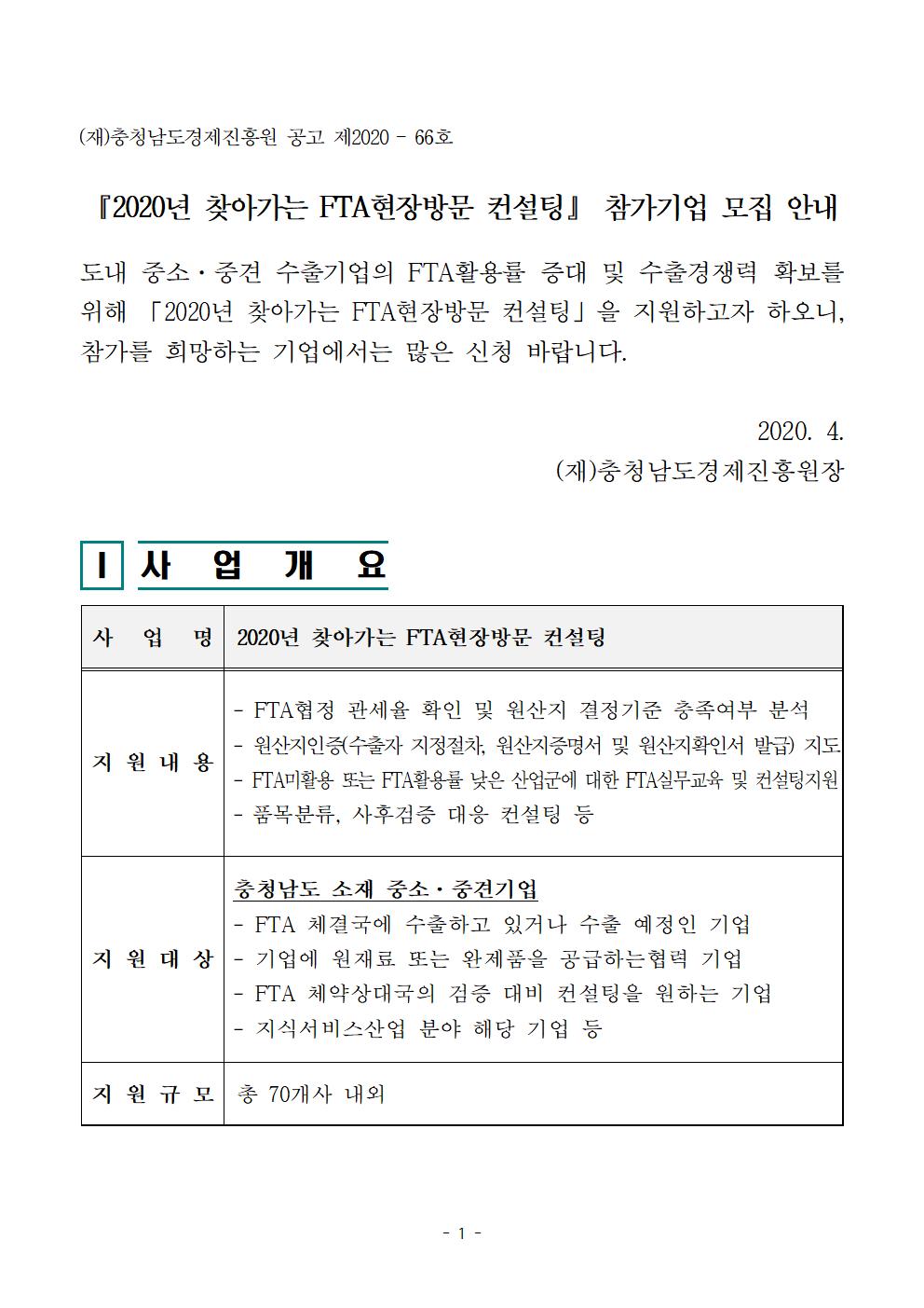 | 2020년 찾아가는 FTA현장방문 컨설팅 참가기업 모집공고 |