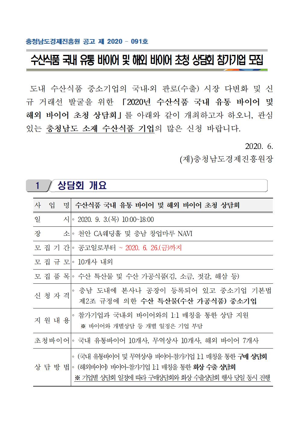 | [수산식품 기업 대상] 2020년 수산식품 국내 유통 바이어 및 해외 바이어 초청 상담회 참가기업 모집 |