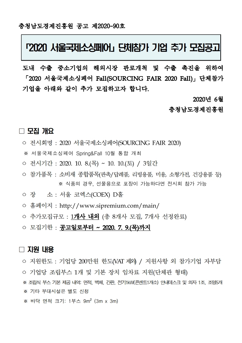 | 2020 서울국제소싱페어 전시회 단체참가 기업 추가 모집공고 |