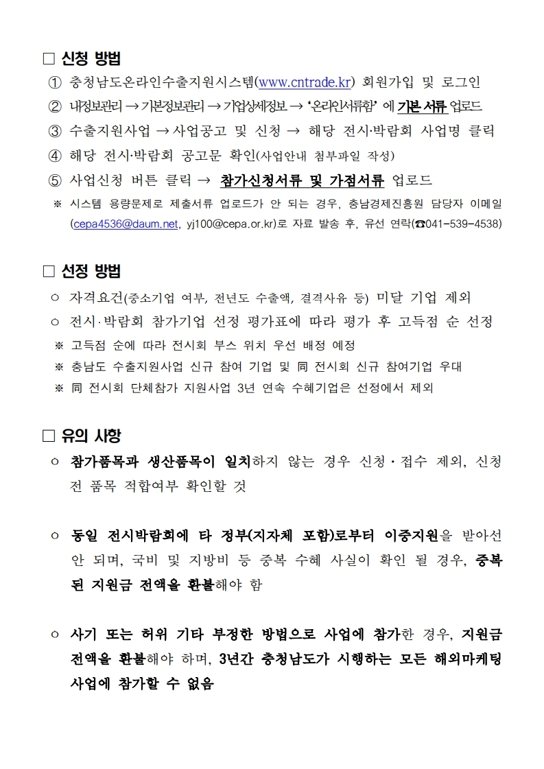 중소기업 제품의 국/내외 판로개척을 위해 국내 전시박람회 참가지원,