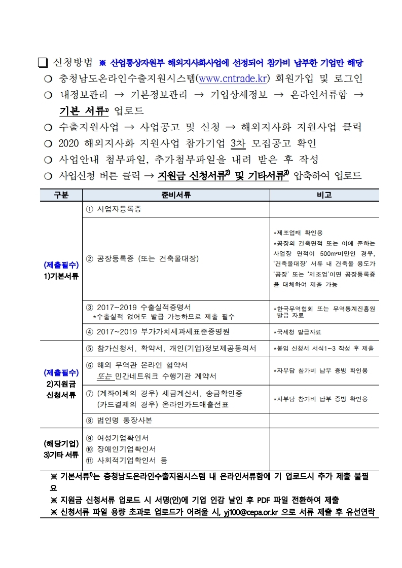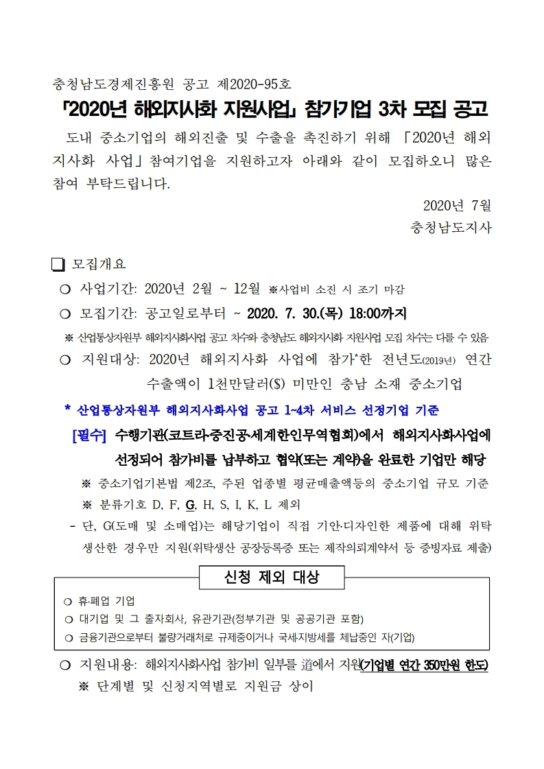 | 2020년 해외지사화 지원사업 참가기업 3차 모집공고 |