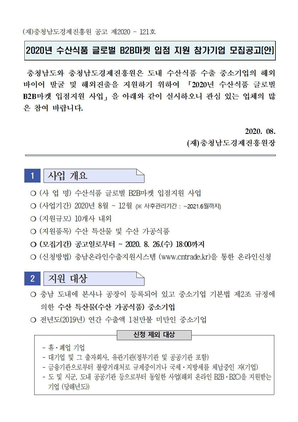 | 2020년도 수산식품 글로벌 B2B마켓 입점 지원사업 참가기업 모집 |