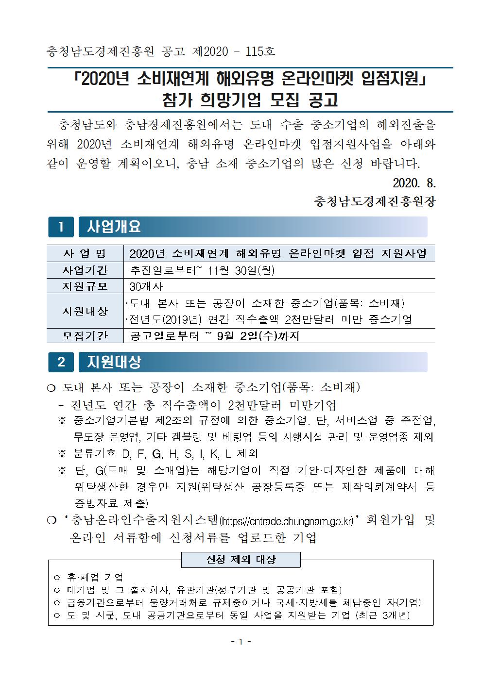 | 2020년 소비재연계 해외유명 온라인마켓 입점지원사업 모집공고 |