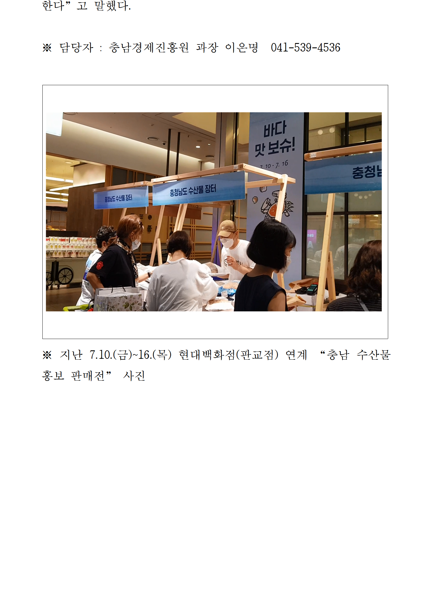 | 충남경제진흥원, 우수 중소(수산) 기업 제품 홍보 판매전 개최 [2020.07.22.] |