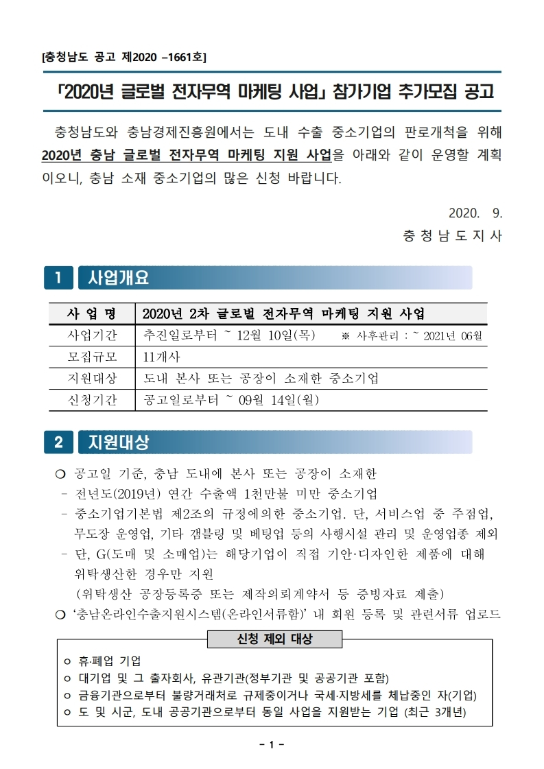 | 2020년 글로벌 전자무역 마케팅 사업 참가기업 추가모집 공고 |