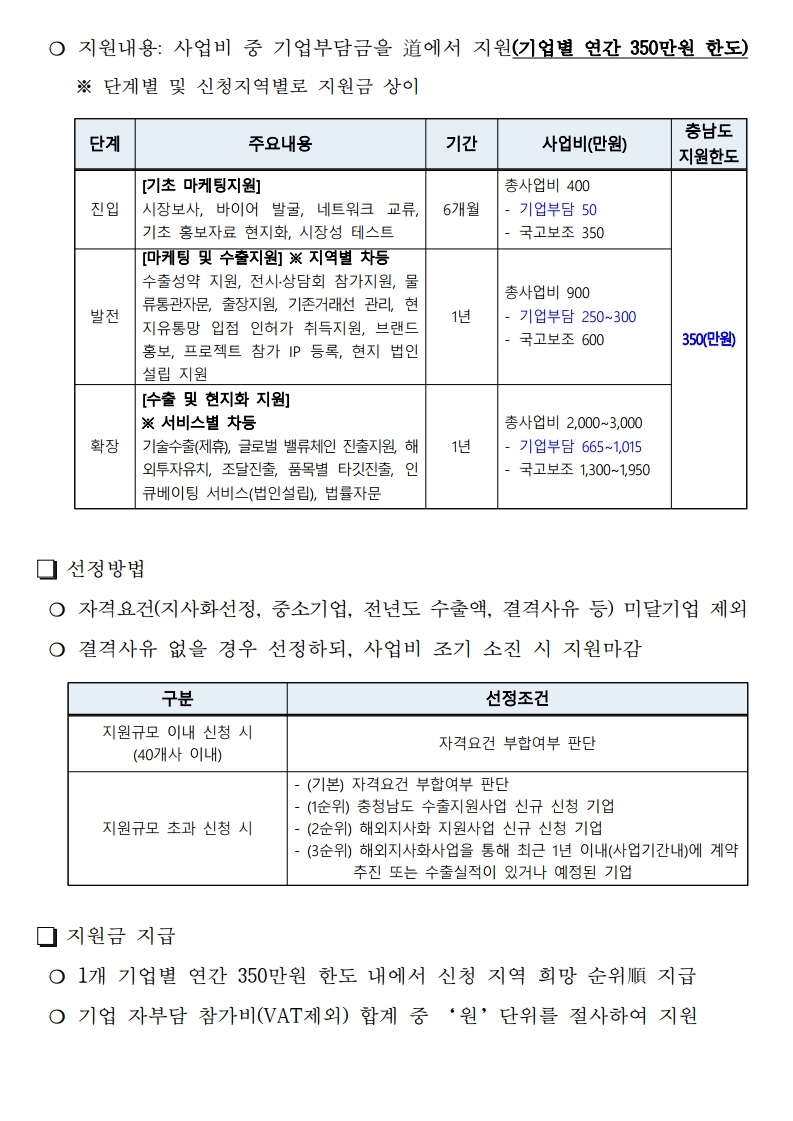 중소기업 제품의 국/내외 판로개척을 위해 국내 전시박람회 참가지원,