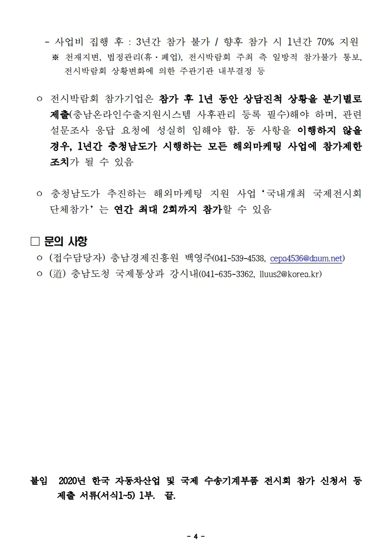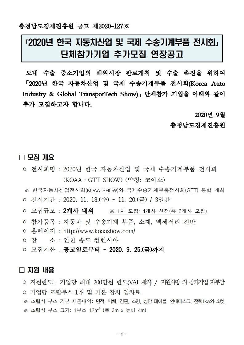 | 2020년 한국 자동차산업 및 국제 수송기계부품 전시회 단체참가기업 추가모집 연장공고 |