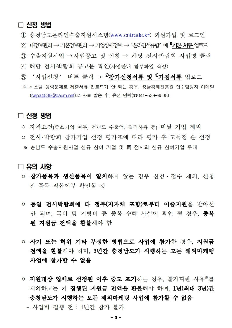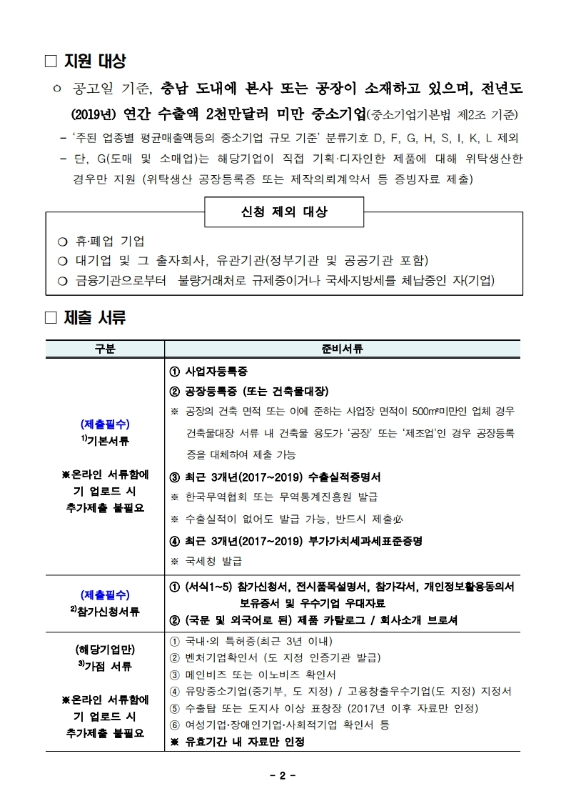 중소기업 제품의 국/내외 판로개척을 위해 국내 전시박람회 참가지원,