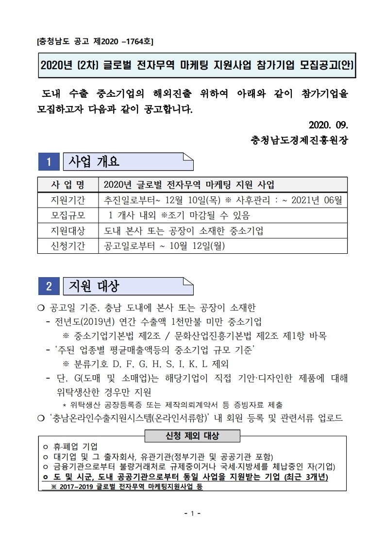 | 2020년 (2차) 글로벌 전자무역 마케팅 지원사업 참가기업 모집공고 |