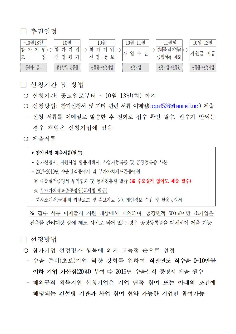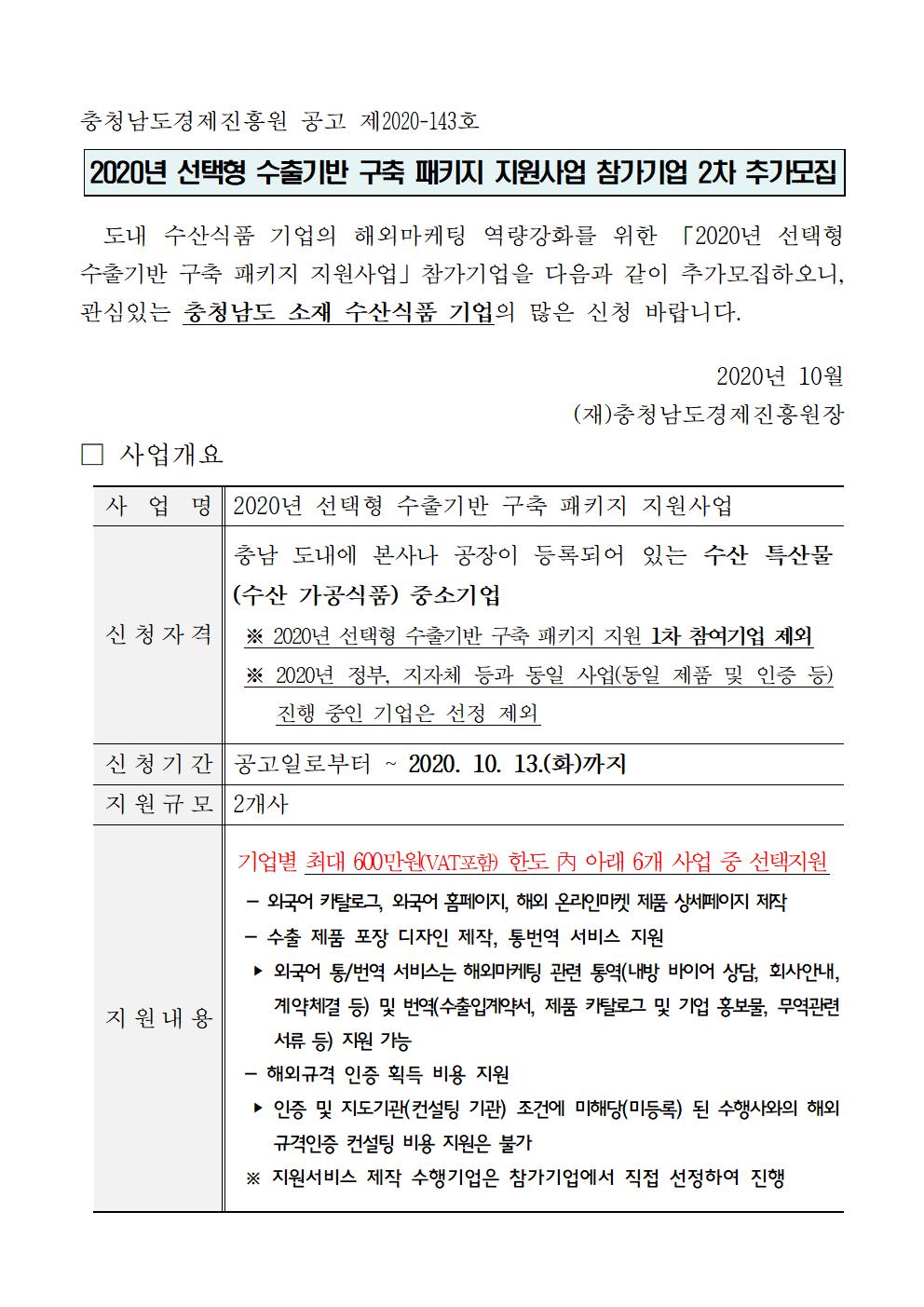 | 2020년 선택형 수출기반 구축 패키지 지원사업 참가기업 2차 추가모집공고 |