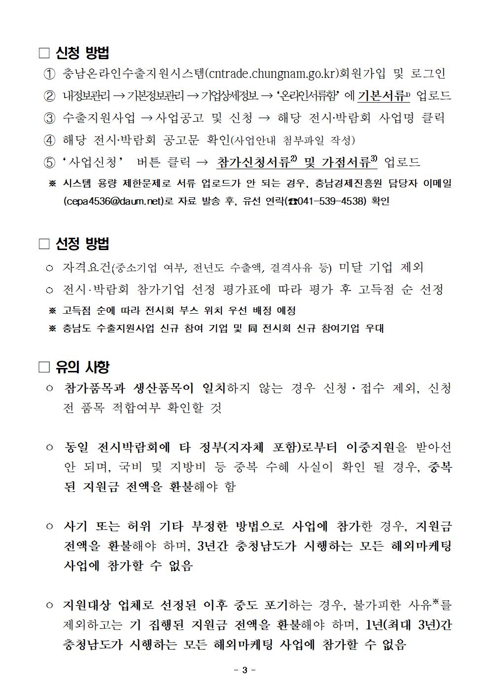 중소기업 제품의 국/내외 판로개척을 위해 국내 전시박람회 참가지원,