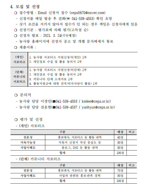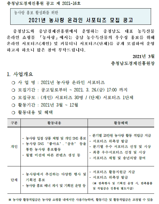 | 2021년 농사랑 온라인 서포터즈 모집 공고 (기한 연장 ~3.26.(금)까지) |