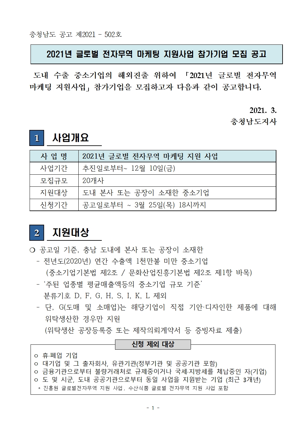 | 2021년 글로벌 전자무역 마케팅 지원사업 참가기업 모집공고 |