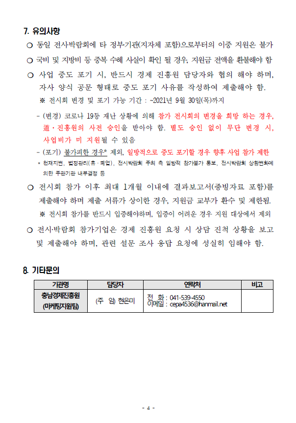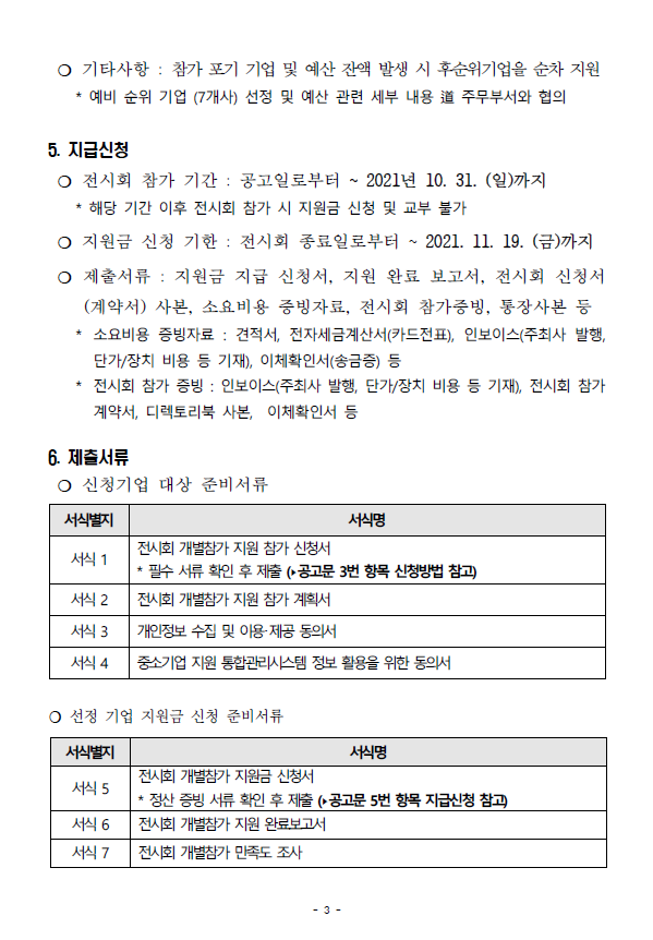 중소기업 제품의 국/내외 판로개척을 위해 국내 전시박람회 참가지원,