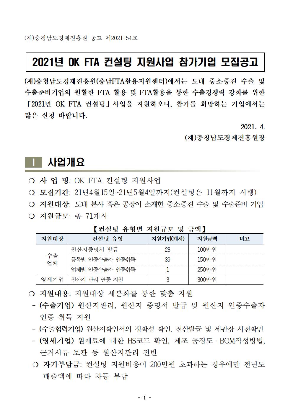 | [충남FTA활용지원센터] 2021년 OK FTA 컨설팅 참가기업 모집 |