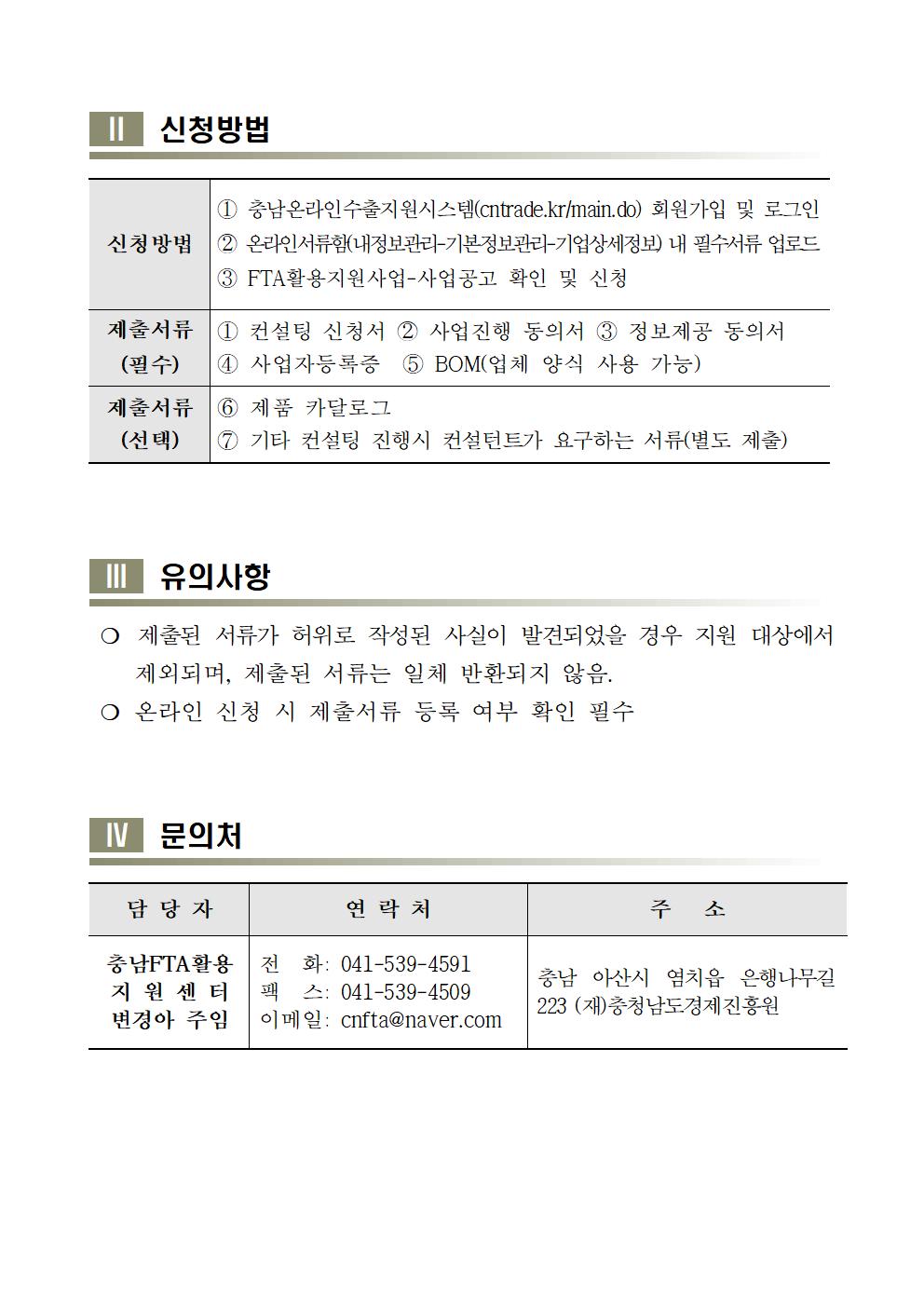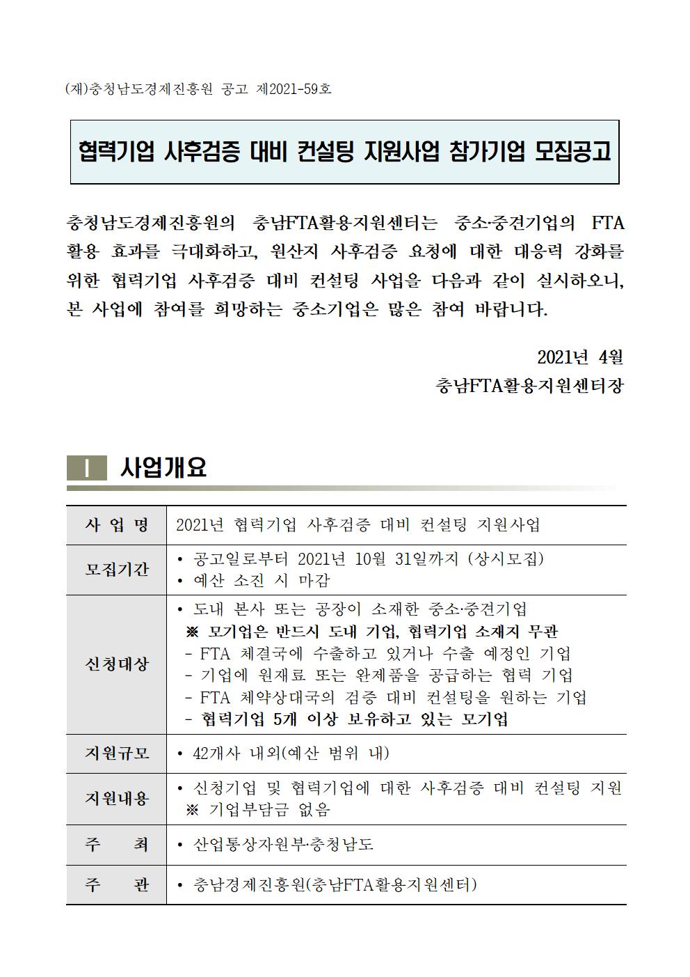 | [충남FTA활용지원센터] 협력기업 사후검증 대비 컨설팅 참여 기업 모집 공고 |