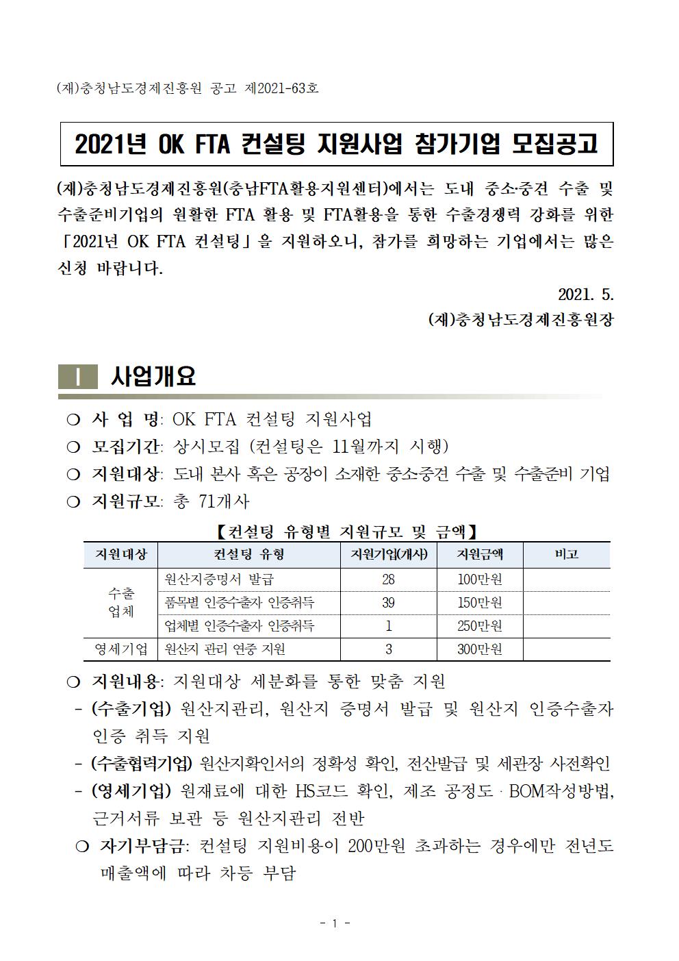 | [충남FTA활용지원센터] OK FTA 컨설팅 지원사업 참가기업 모집 |