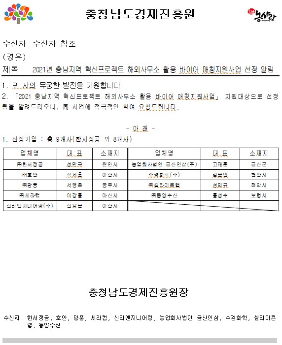 | 해외통상사무소 활용 바이어 매칭지원사업 선정기업 안내 |