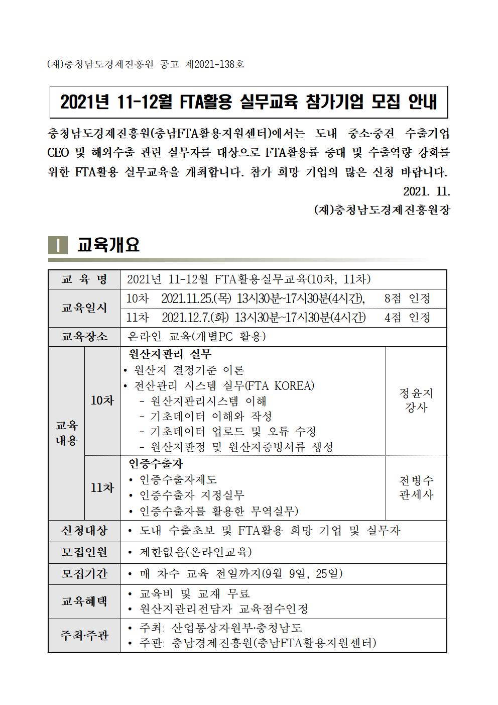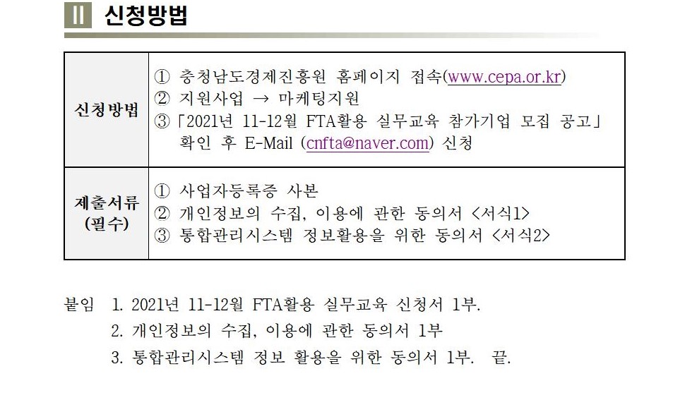 | [충남FTA활용지원센터] 11월-12월 FTA활용 실무교육 모집 |