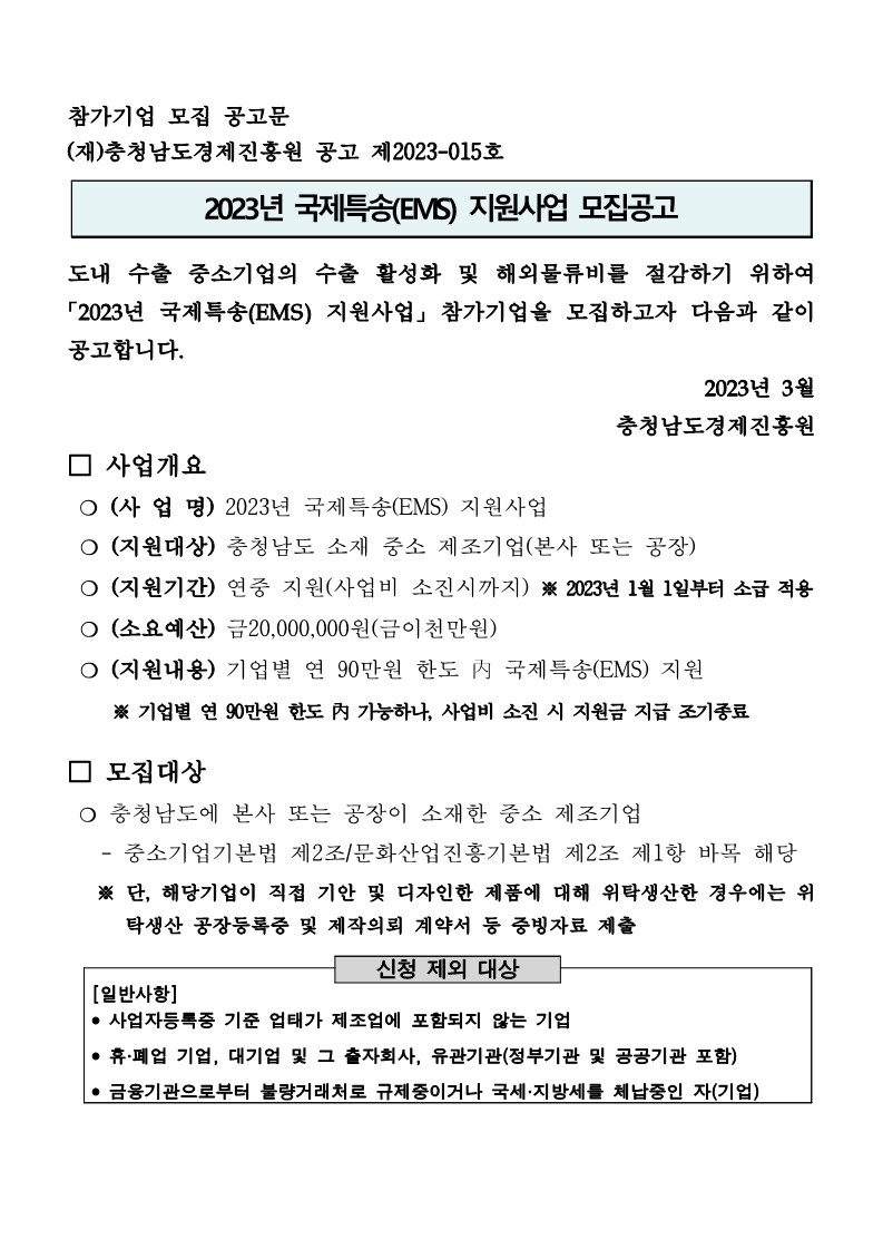 | 2023년 국제특송(EMS)지원사업 모집공고 |