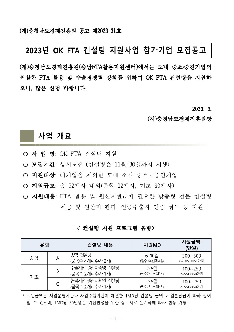 | 2023년 OK FTA 컨설팅 지원사업 참가기업 모집공고 |