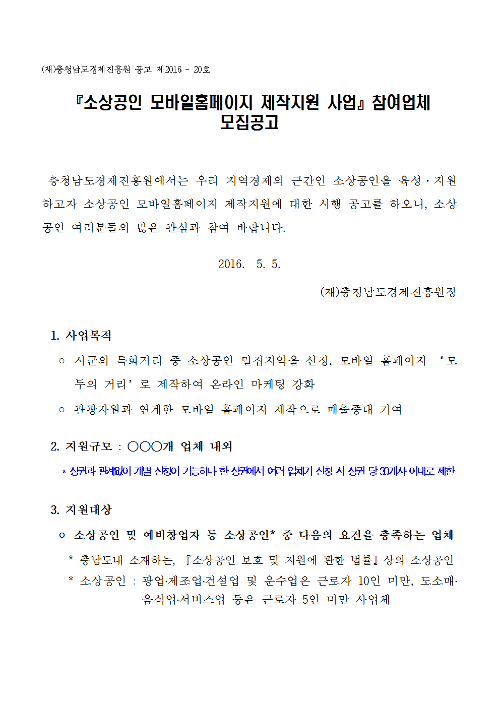 | 『소상공인 모바일홈페이지 제작지원 사업』참여업체 모집공고 |
