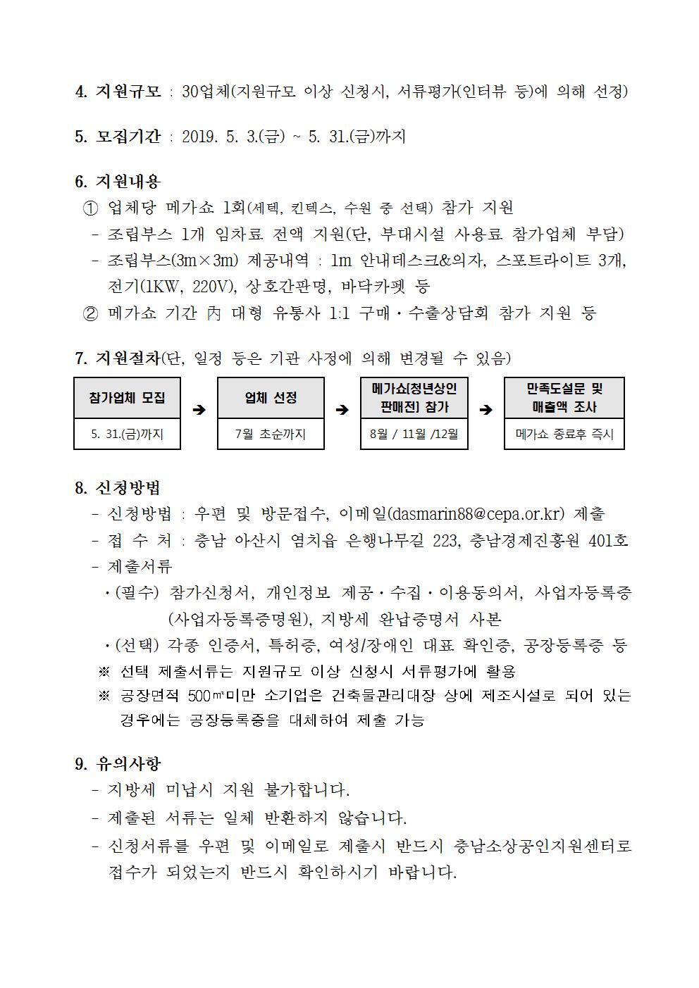 | 2019년 청년상인 판매전 참여업체 모집 |