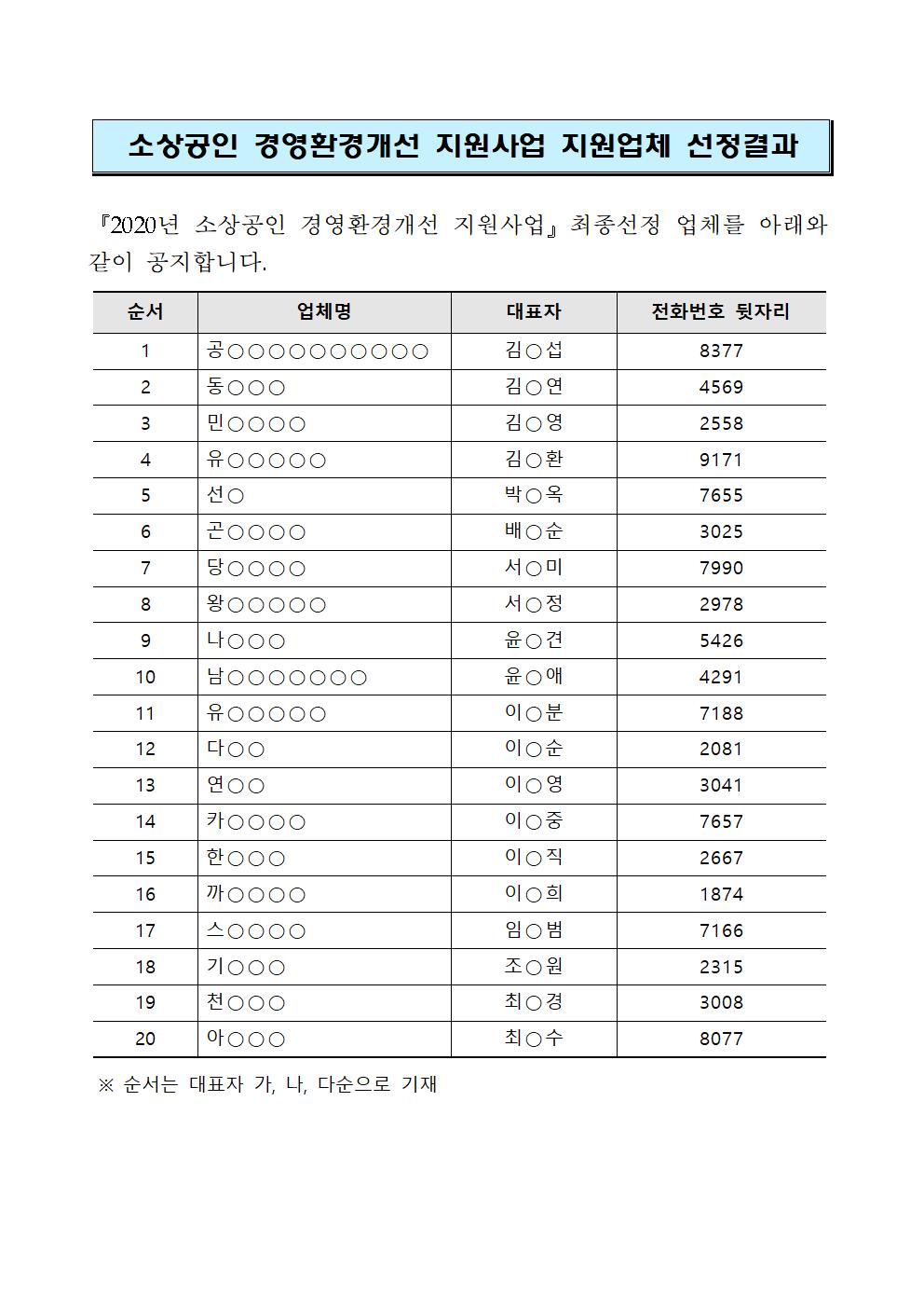 | 2020년 충청남도 소상공인 경영환경개선 지원사업 2차 선정업체 공고 |