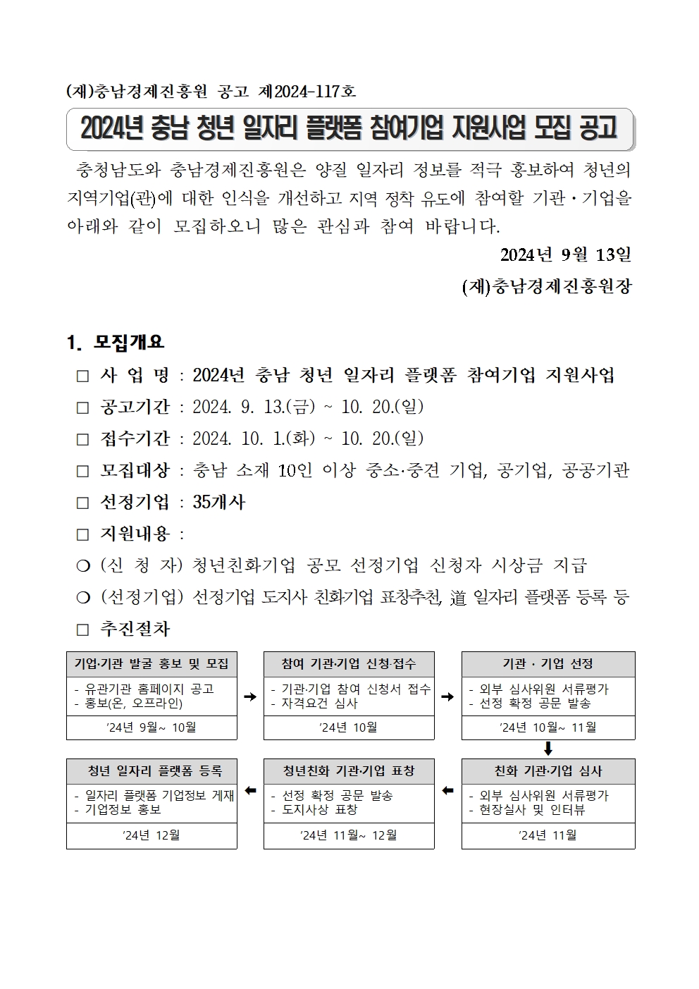 | 2024년 충남 청년 일자리 플랫폼 참여기업 지원사업 모집 공고 |