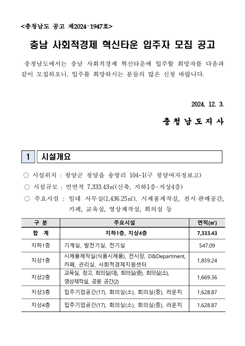 | 충남 사회적경제 혁신타운 입주자 모집 공고 |
