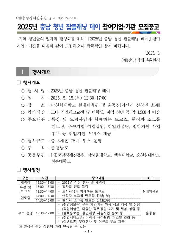 | 2025년 충남 청년 잡플래닝 데이 참여기업·기관 모집공고 |
