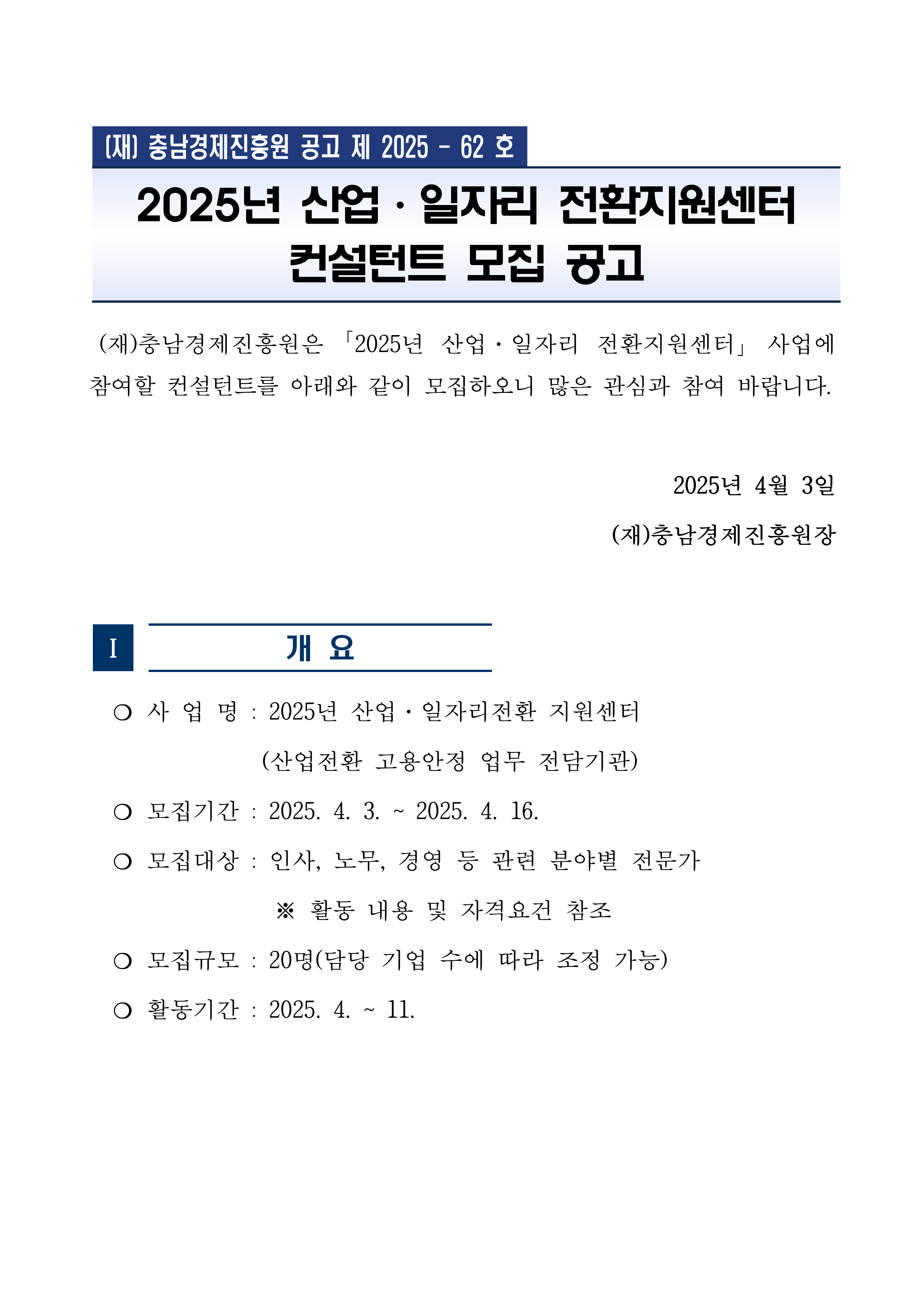 | 2025년 산업·일자리 전환지원센터 컨설턴트 모집 |