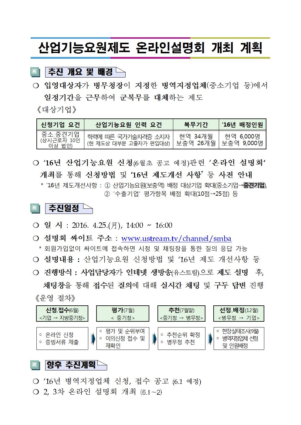 | 산업기능요원 "온라인설명회" 개최 안내 |
