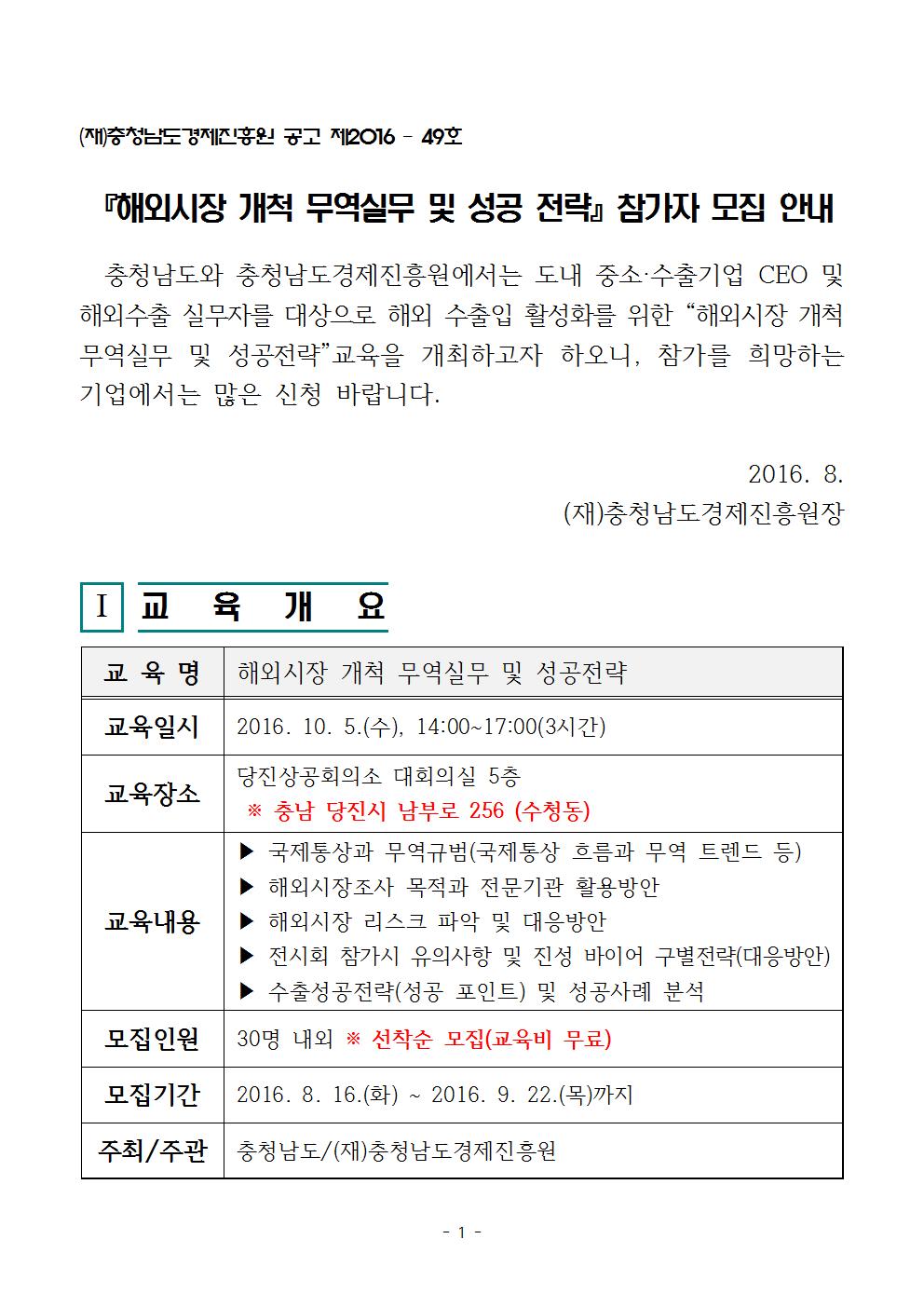 모집 해외시장 개척 무역실무 및 성공전략 교육 참가자 모집 안내