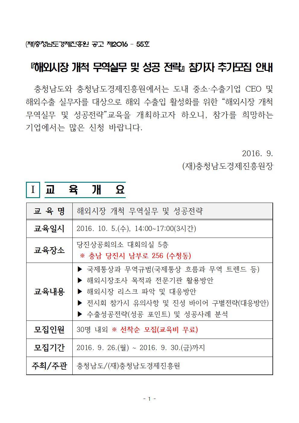 | 모집안내 해외시장 개척 무역실무 및 성공전략 참가자 추가 모집 안내 |