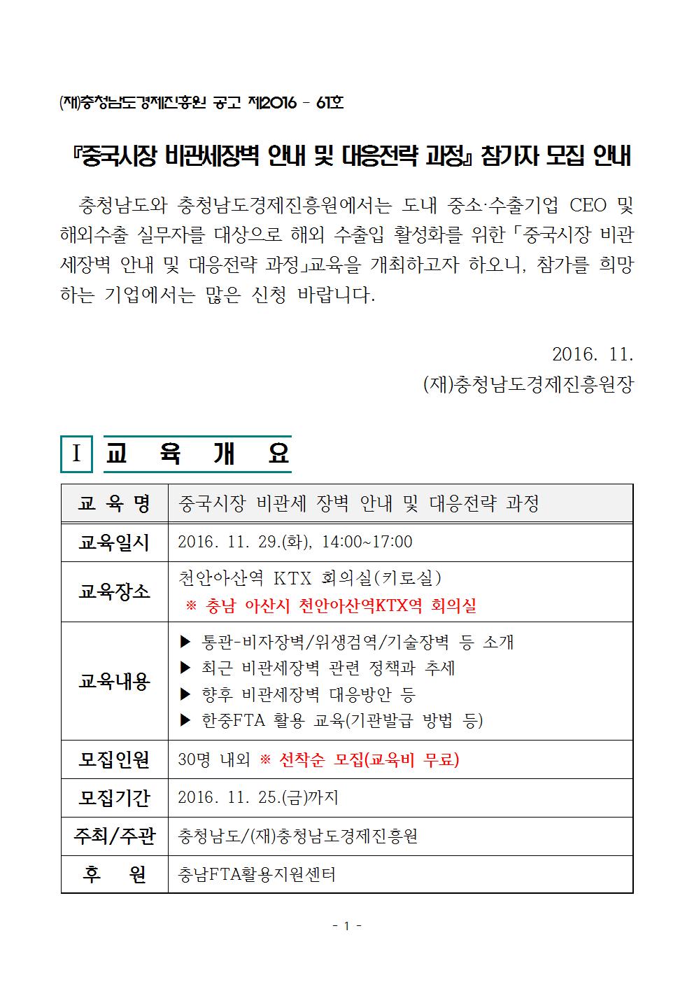 | 모집 공고 중국시장 비관세장벽 안내 및 대응전략 과정 참가기업 모집 안내 |