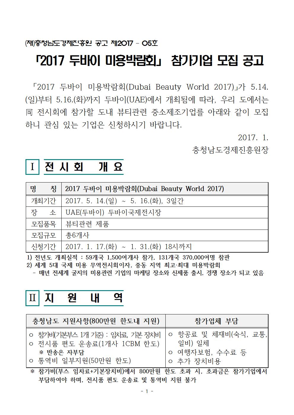 2017 두바이 미용박람회 단체참가지원 참가기업 모집 공고 및 신청서류_1.pdf