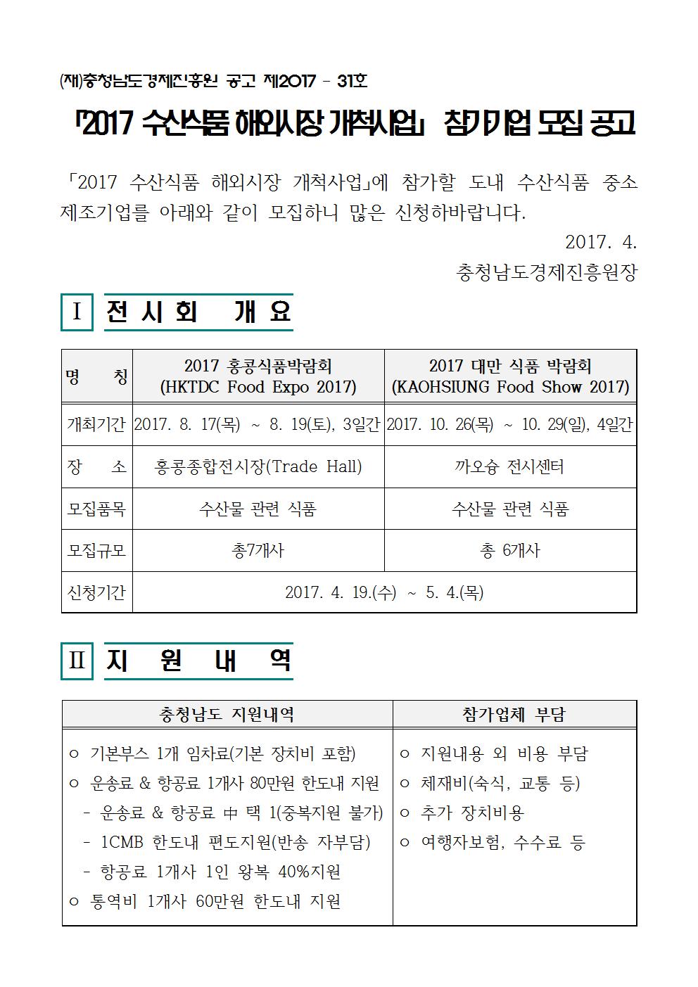 모집 2017년 수산식품 해외시장 개척사업 참가기업 모집 안내