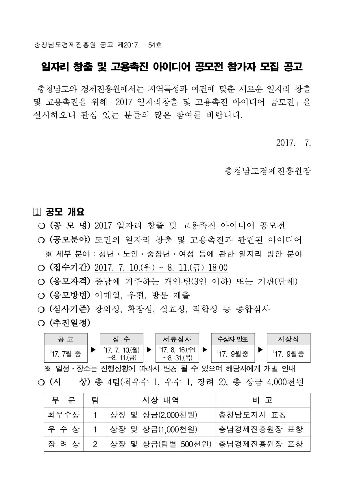 공고 2017 일자리창출 및 고용촉진 아이디어 공모전 참가자 모집