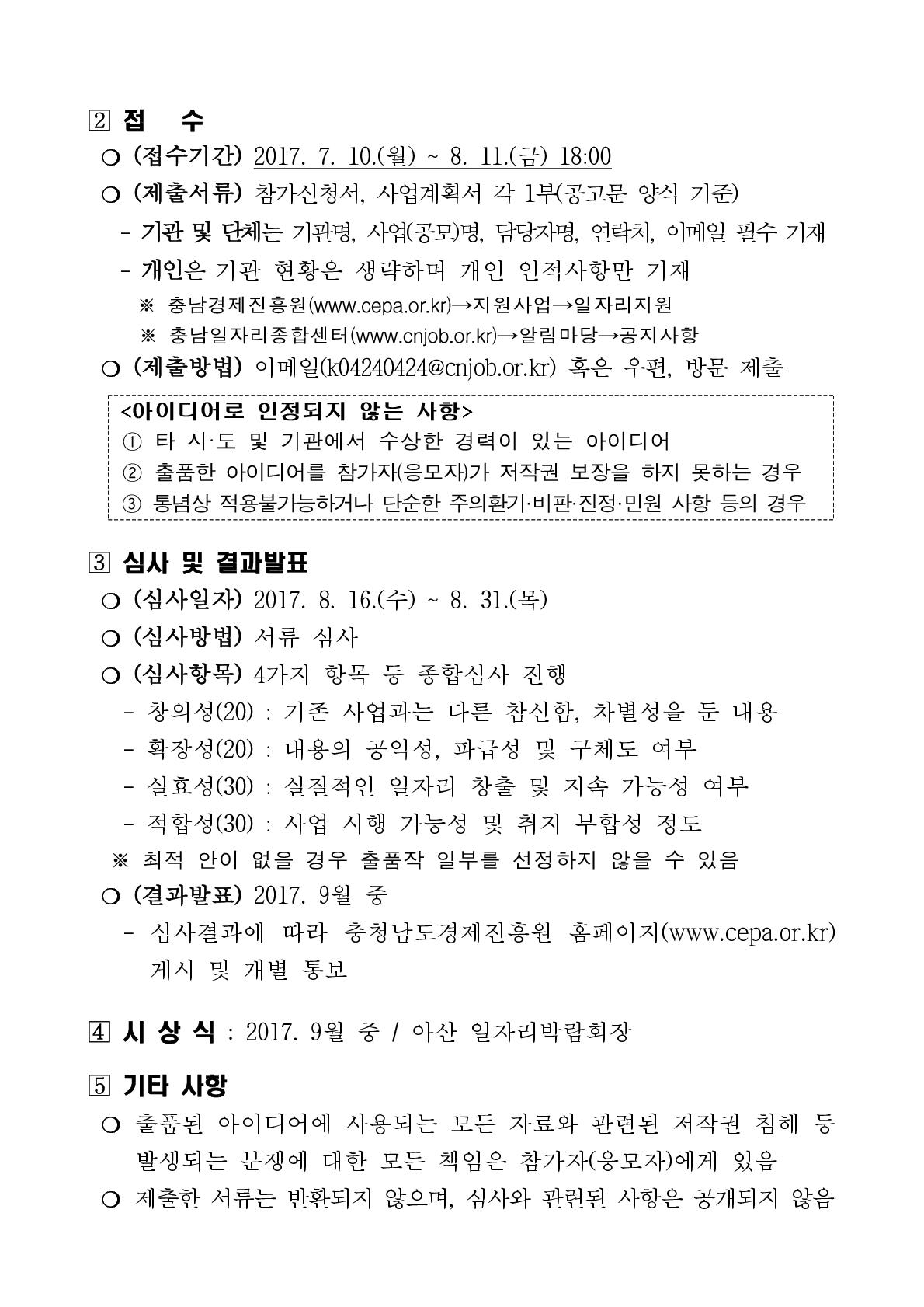 2017 일자리창출 및 고용촉진 아이디어 공모전 공고(서식 포함)_1.hwp