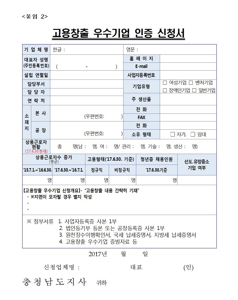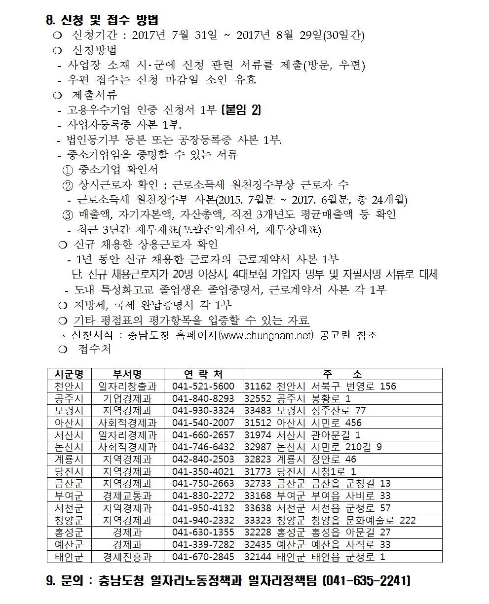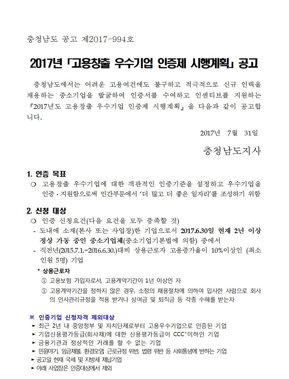 (충남도)2017년 고용창출 우수기업 인증제 시행계획 공고