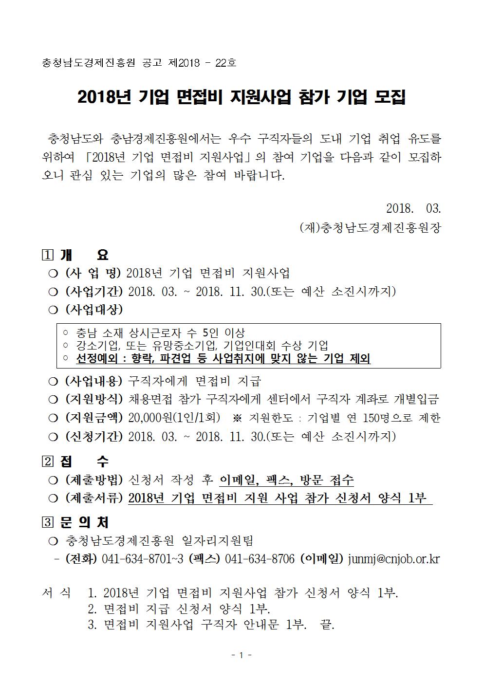 2018년 기업 면접비 지원사업 참가기업 모집 공고(서식포함).hwp
