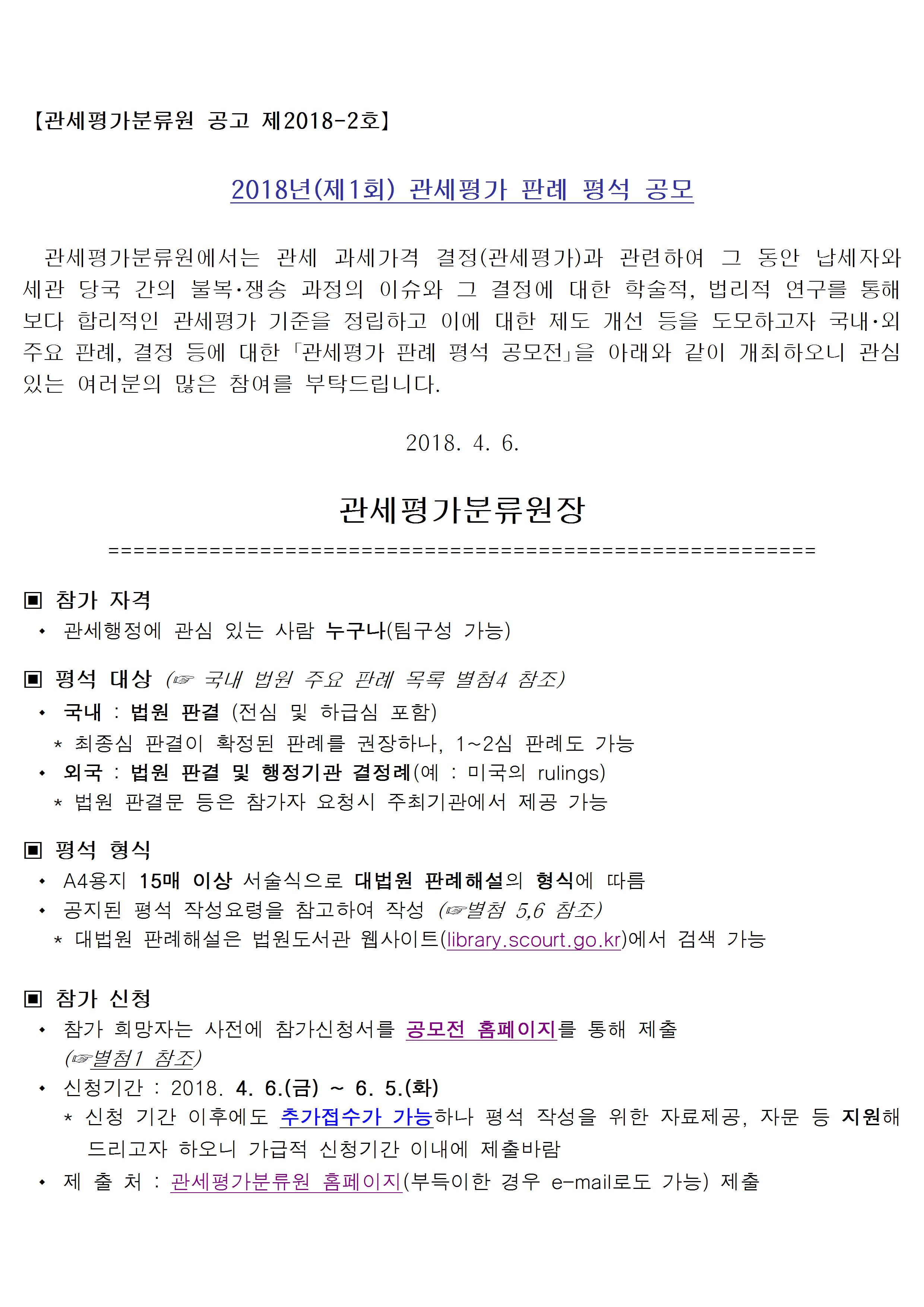 1. 2018년 관세평가 판례 평석 공모전 공고문.hwp