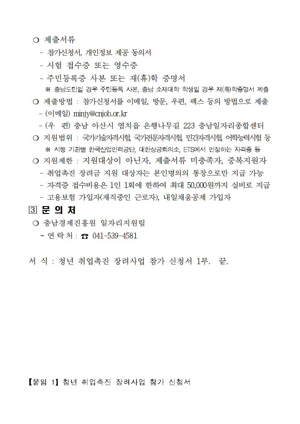 2018년 청년 취업촉진 장려사업 모집 공고서식 포함_1.hwp
