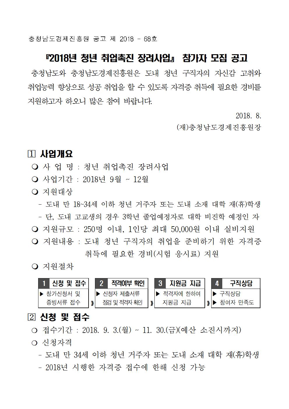 『2018년 청년 취업촉진 장려사업』 참가자 모집 공고
