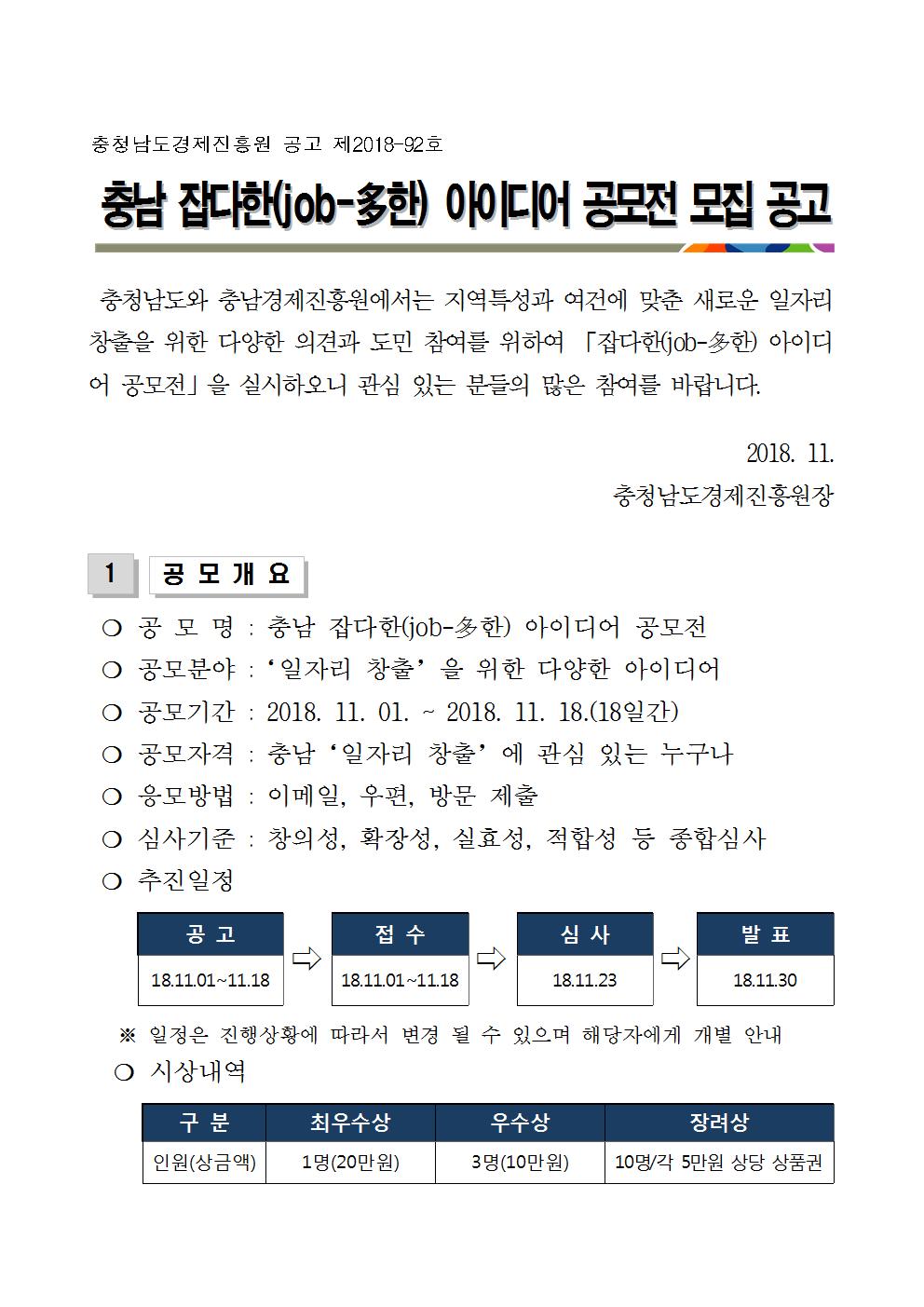 충남 잡다한(job-多한) 아이디어 공모전 모집 공고