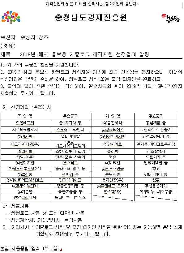 2019 해외홍보용 외국어 카탈로그 제작지원 선정기업 알림 공고