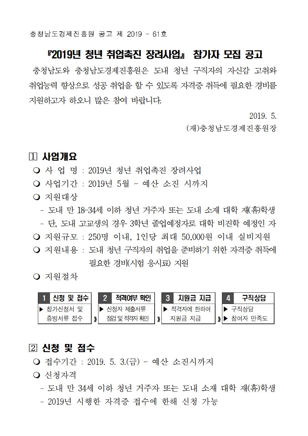 「2019년 청년 취업촉진 장려사업」참가자 모집공고