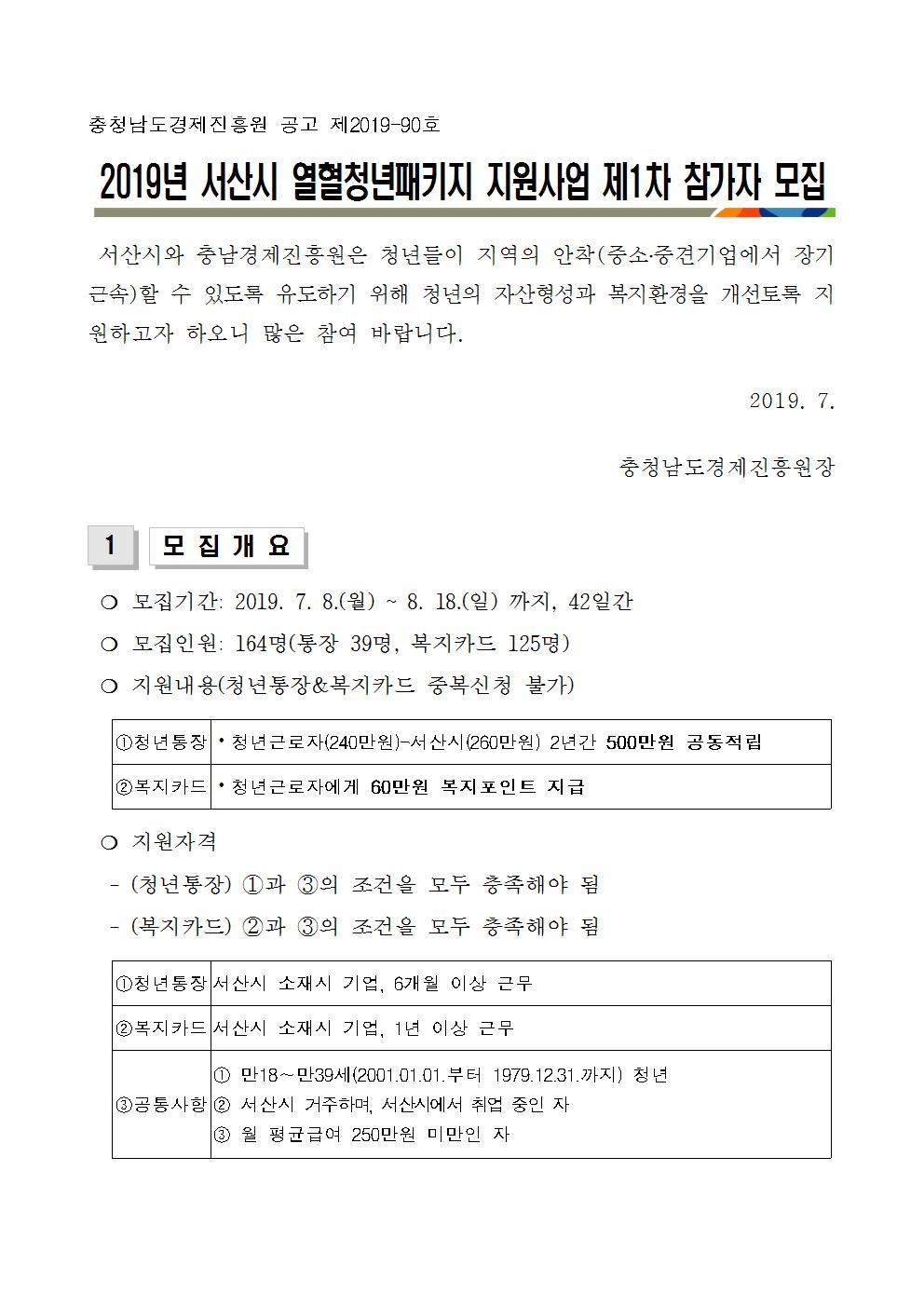 2019년 서산시 열혈청년패키지 지원사업 제1차 참가자 모집