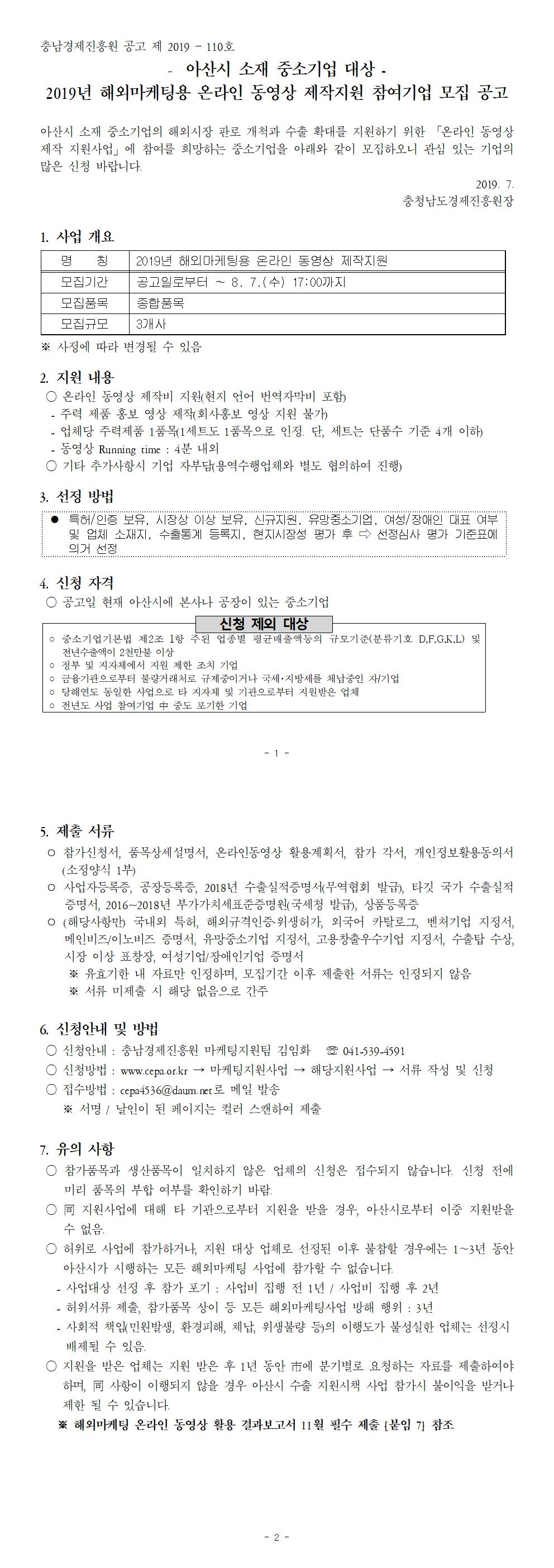 2019 아산시 온라인 동영상 제작 홍보지원 모집공고_1.hwp